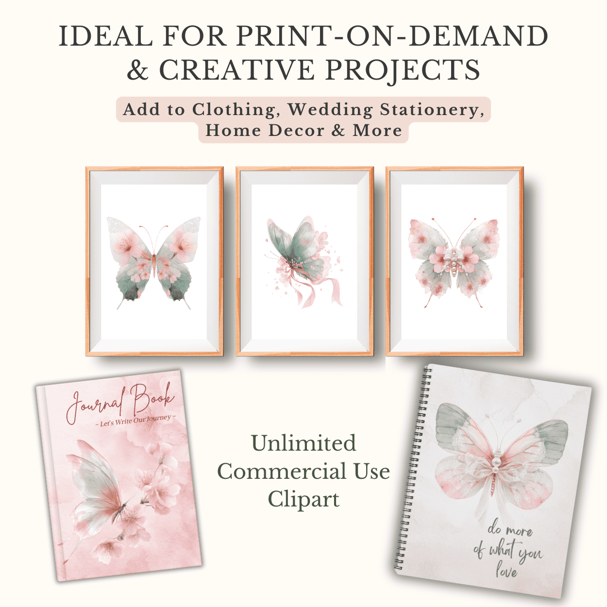 Bring delicate beauty to your creative projects with this Butterfly Clipart Bundle in soft watercolor hues of ballet pink and sage green.