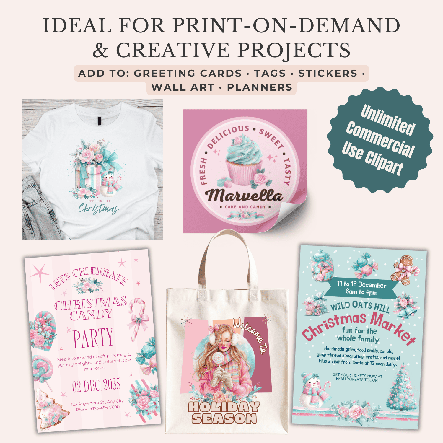 Candy Shop Christmas Clipart – 70+ Magical Pastel Holiday Graphics with Festive Sweets, Gingerbread & Candy Canes