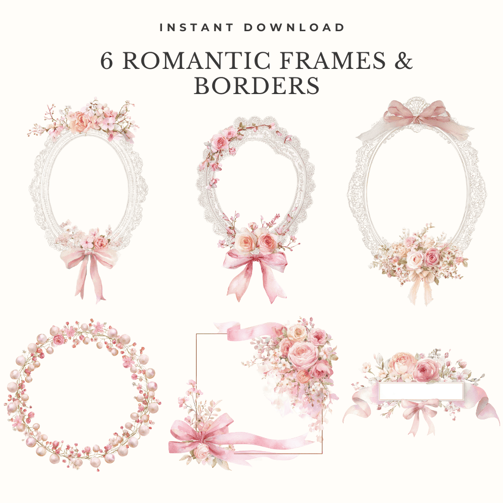 6 Romantic Frames → lace and floral frames, including 1 pearl garland design