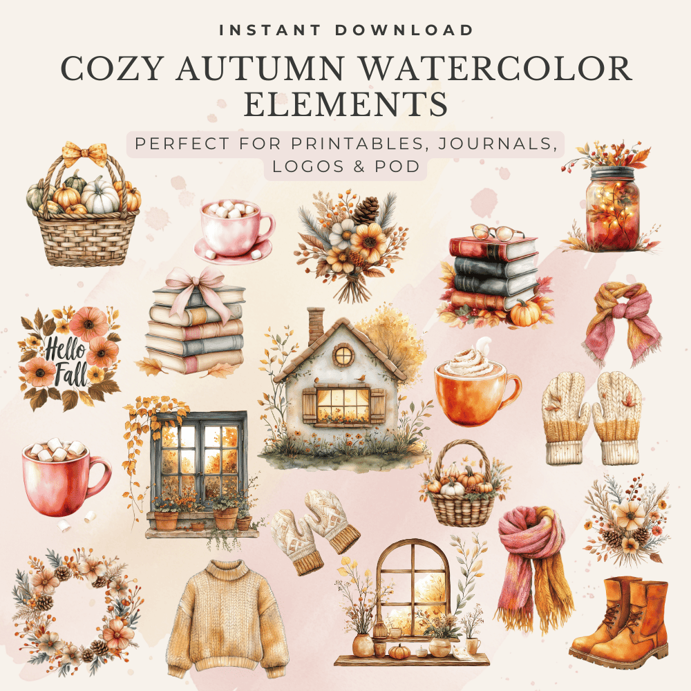 Celebrate the beauty of autumn with the Hello Fall Girl Clipart Bundle. This cozy cottagecore watercolor collection includes 35 high-quality PNGs — charming characters, delicate florals, rustic fall elements, and 6 bonus digital papers — perfect for planners, journals, printables, and more.