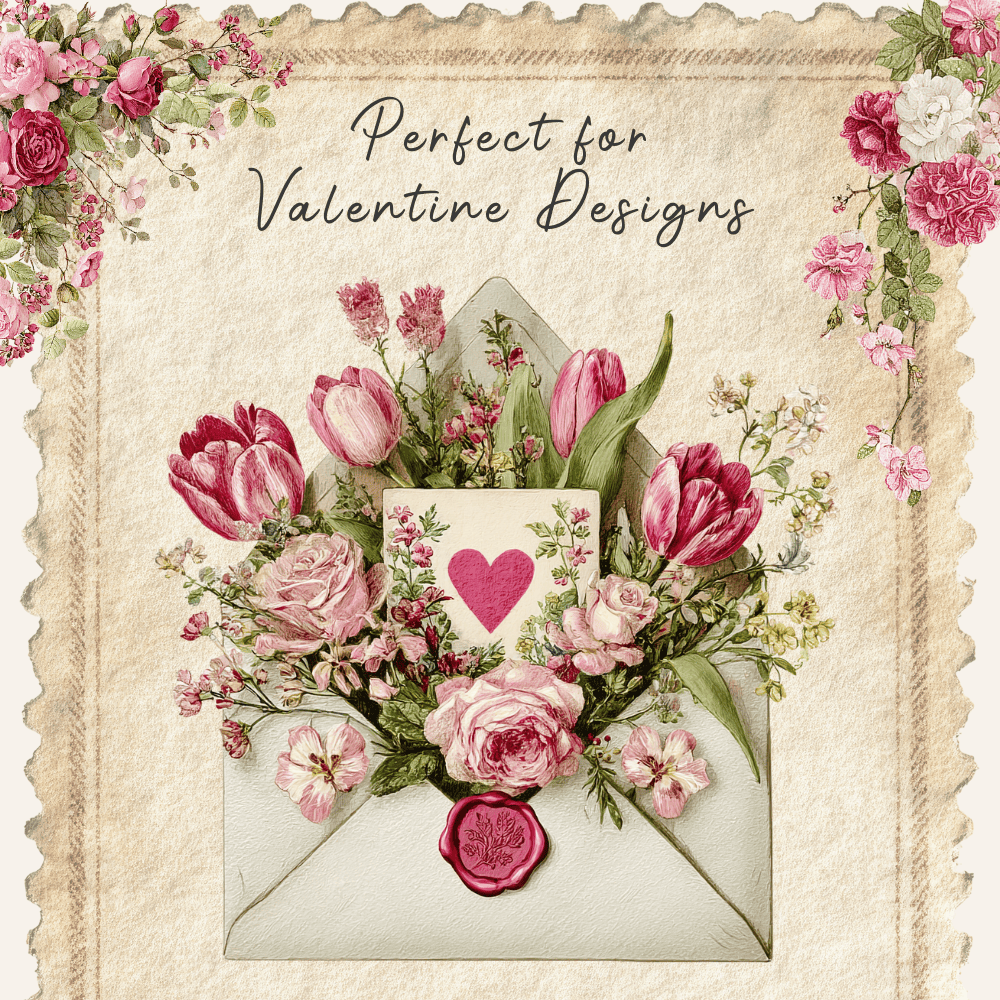 Featuring 10 vintage floral love letter illustrations with antique paper, soft watercolor florals, ribbon details, and charming cottagecore accents, this mini bundle is perfect for Valentine cards, prints, stationery, and romantic craft projects.